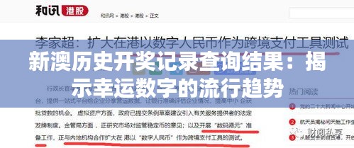 新澳歷史開獎記錄查詢結(jié)果:揭示幸運數(shù)字的流行趨勢